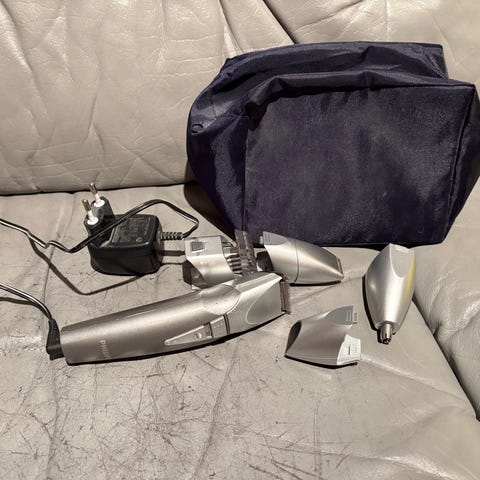 Philips hiustenleikkuri ja nenäkarvatrimmeri, väri musta. Pakettiin kuuluu verkkovirtalaturi sekä säädettävä kampa hiustenleikkuriin. Laitteet soveltuvat hiusten ja partakarvojen leikkaamiseen sekä nenä- ja korvakarvojen siistimiseen. Sähkökäyttöinen hiustenleikkuri, jossa liukusäätimellä valittava pituusasetus. Nenäkarvatrimmeri on erillinen laite tarkkaan viimeistelyyn.
