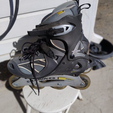 Myydään vähän käytetty setti: koon 44.5 rullaluistimet K2, sauvat pituudella 170cm ja suojat polvi+kyynärpää.