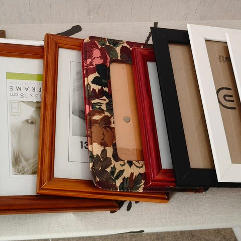 Kehyksessä koristeellinen reunus ja lasi edessä. Taustapuolella tuki pöydälle asettamista varten sekä ripustusmahdollisuus seinälle. Soveltuu valokuville tai pienille taidekuville sisustuskäyttöön.