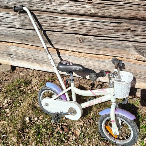Kahdella lapsella käytössä ollut polkupyörä. Teknisesti kunto ihan hyvä, mutta kauneusvirheitä rungosta löytyy. Aurinko haalistanut satulaa ja ohjaustangon suojaa.