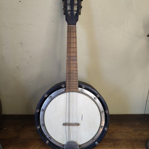 Tyylikäs boheemi kuusikielinen vintage kitarabanjo, mukaan kaunis punottu nahkahihna