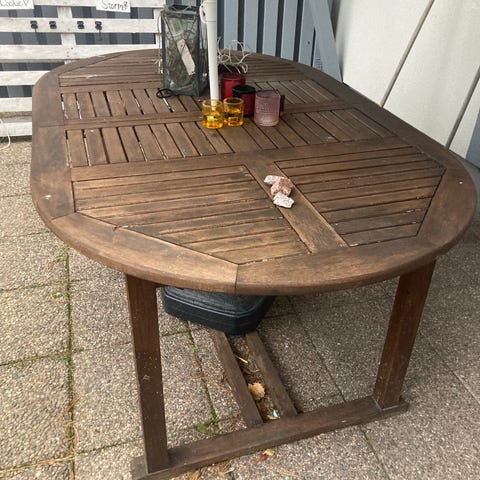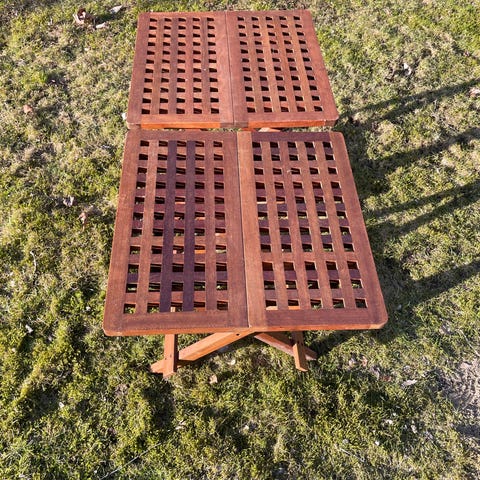 Taitettava akaasiapuinen suorakaiteen muotoinen ulkopöytä. Pöydässä on keskellä aukko mahdolliselle aurinkovarjolle. Runko on taittuva, mikä helpottaa siirtämistä ja säilytystä. Soveltuu käytettäväksi terassilla, parvekkeella tai pihalla ruokailu- ja oleskelupöytänä.