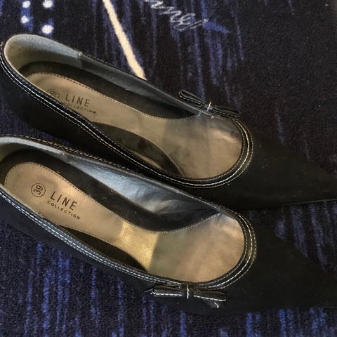 Bianco korkokengät, koko 39. Mustat, avonaiset korkokengät, joissa on ristiin menevät ohuet remmit ja solkikiinnitys nilkan ympärillä. Matalat korot ja mukavat jalassa.