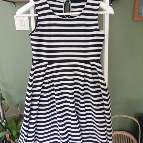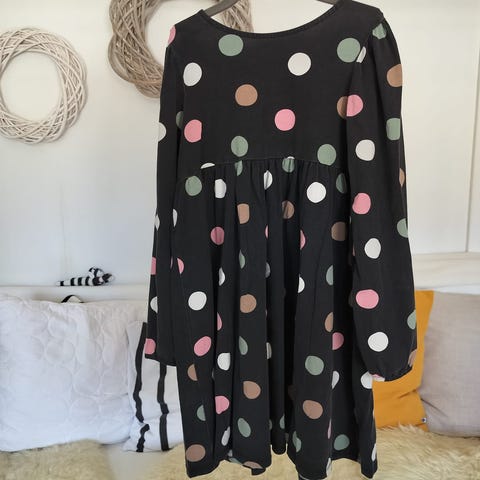 Koko n.140.(kokoa ei löytynyt tunikasta). Yksi kuva otettu läheltä kangasta. Yksi kuva laatuvirheestä mekon etupuolella.
