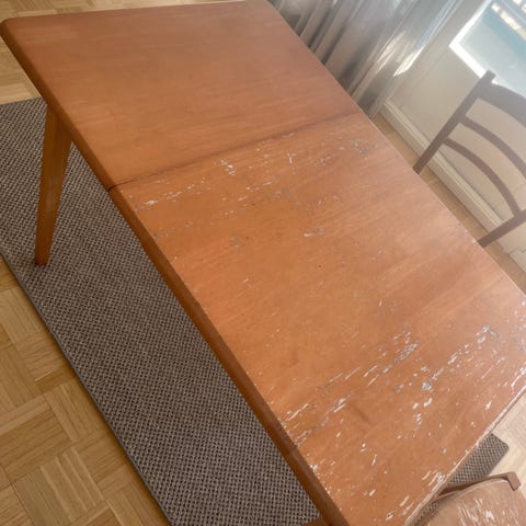 Myydään kolmisen vuotta käytössä ollut ruokapöytä, hyvässä kunnossa ei varsinaisia käytön jälkiä näkyvissä.