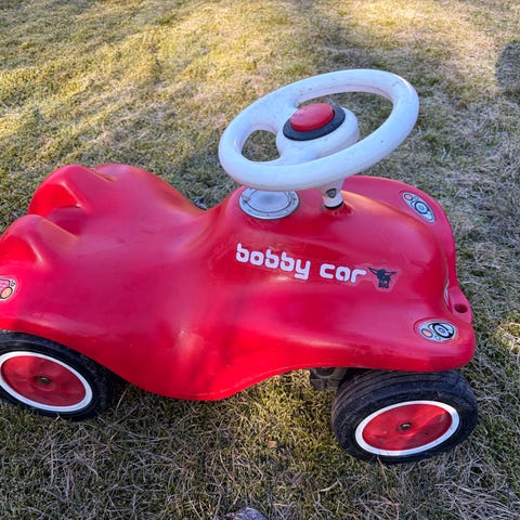 Fisher-Price potkuauto kaivuri. Ollut ennen äänitehosteita, mutta ollut hiekkalaatikolla käytössä, niin ilmeisesti hiekkaa mennyt nappuloiden väleihin, niin ei toimi enää. Kauha myös ennen pysynyt itsestään ylhäällä, mutta potkuttelu edelleen onnistuu kauhaa ylhäällä pitäen. Kauhalla pystyy myös kaivamaan.