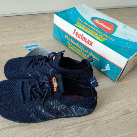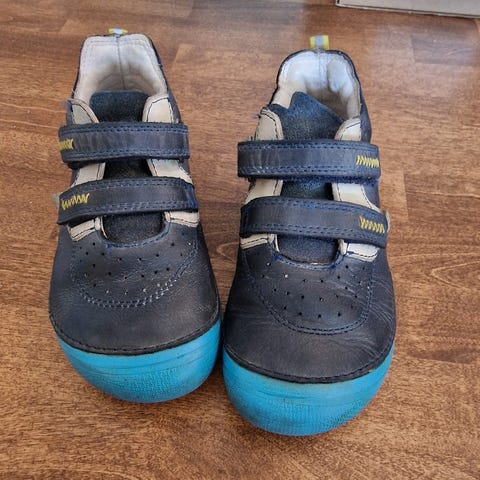 Lasten paljasjalkakengät, koko 30, sm. 19,1 cm. Canvastennarit, siniset. Siistissä käytetyssä kunnossa.