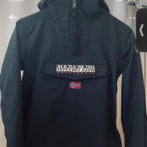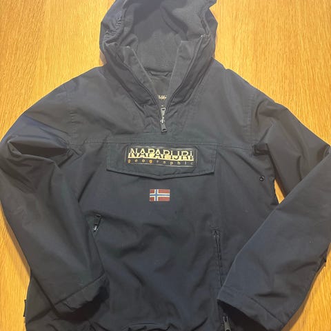 Napapijri anorakki. Vartalo-osassa fleecevuori, hihat liukkaalla vuorikankaalla. Toisen ranteen resorissa pieni reikä, n. 2-3 mm, ks. kuva. Muuten kunto hyvä. Koiratalous.