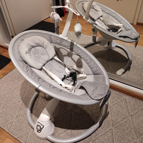 4moms mamaRoo sähkökäyttöinen babysitteri harmaassa värissä vastasyntyneille ja vauvoille.