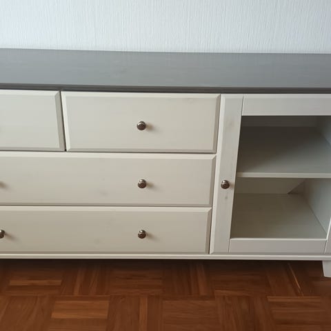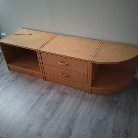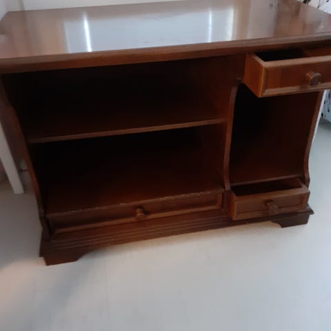 Kuvanmukainen lipasto/TV-pöytä, mitat k.70, p.90 ja s.45. Siistikuntoinen, listat puuttuvat sivuilta, esim. Sisustusmuovilla päällystämällä pöydän taso sivuineen niin tulee hieno.