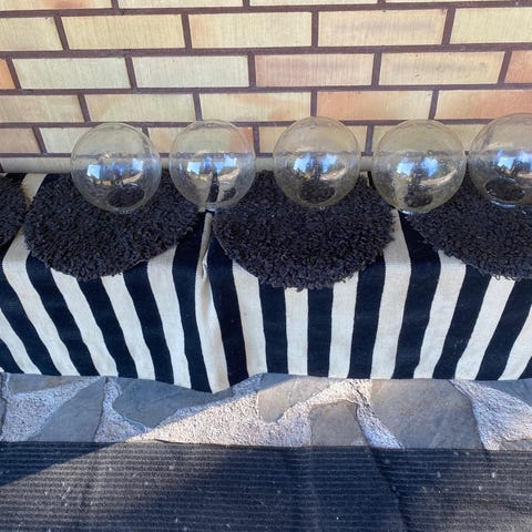 Neljä lasista lampun kupua. Kierteiden sisähalkaisija on kaikissa noin seitsemän senttiä. Ajan patinaa löytyy