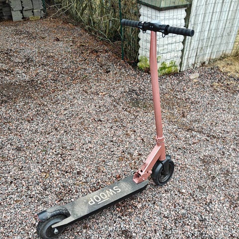 Swoop sähköpotkulauta musta. Sähköpotkulaudassa on etupyörän napamoottori, jonka teho on 250 W. Akun nimellisjännite on 42 V ja kapasiteetti 4000 mAh. Lataus tapahtuu mukana näkyvällä laturilla. Rungossa on IPX4-roiskevesisuojaus. Ohjaustangossa on digitaalinen näyttö ja painikkeet nopeuden ja virran hallintaan. Soveltuu lyhyisiin matkoihin ja kaupunkiajoon tasaisilla alustoilla.