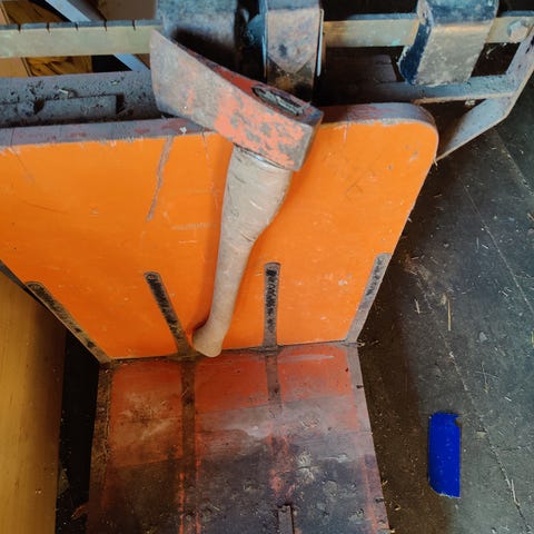 Kirves teräskahvalla ja puukahvalla