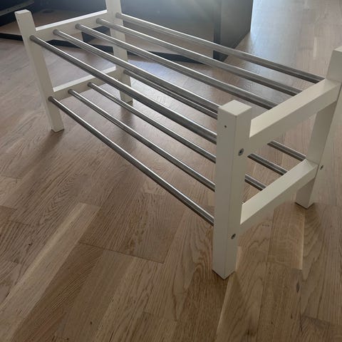 Valkoinen siisti kenkäkaappi kolmella laatikolla. Laatikon hyllyissä säätö mahdollisuus erikokoisille kengille. Käytön jälkiä näkyvissä, muutoin siistinä pysynyt.