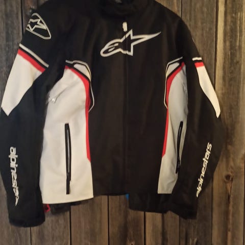 Alpinestars ajotakki koossa XXL. Väritys musta, sininen ja valkoinen. Takin ulkopinta on tekstiiliä ja sisäpuolella on verkkovuori. Vetoketjukiinnitys edessä. Hihassa ja rinnassa Alpinestars-logot. Takissa ei ole suojia.