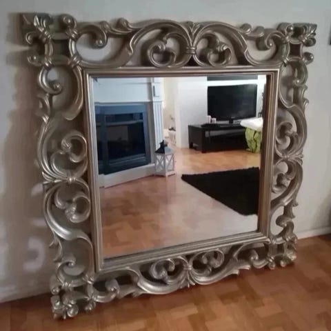 Myydään upea hopean värinen peili. Koko n. 61x90cm.