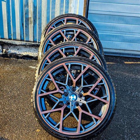 Näyttävät 20" 5x112 BMW M Sport replica vanteet vaihtokuntoisineen kumeineen. Alkuperästä ei sen parempaa tietoa, tulleet vaihtoauton mukana. Näyttävät kaikin puolin BMW M sport vanteilta, mutta lienevät replicat. Joitain naarmuja ja muita käytön jälkiä on, eivät vaikuta ajoon tai pahemmin näy. Ei hitsauksia / halkeamia / muita vastaavia. Renkaissa TMPS-sensorit.