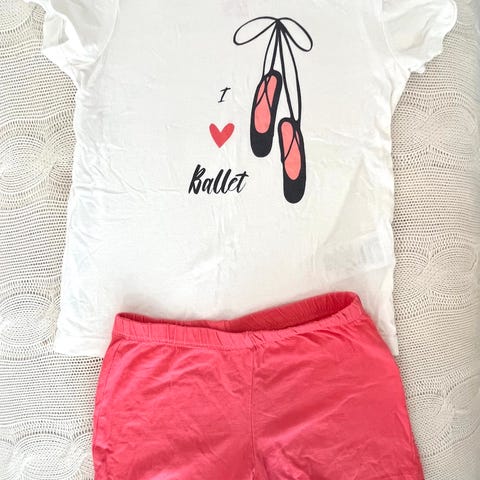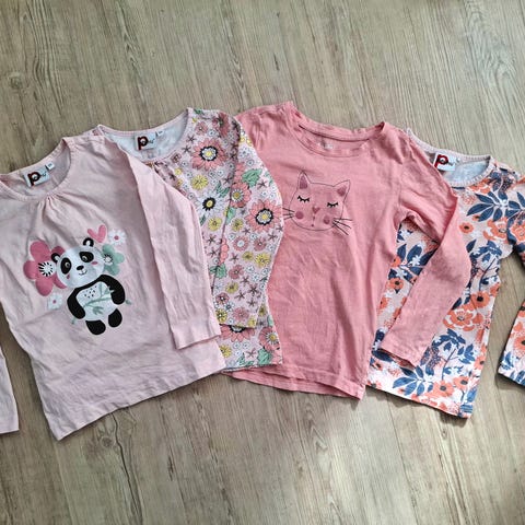 Piruetti jumppa-asu/tanssi-asu vaaleanpunainen/sininen, lapussa koko 120-130, mutta meillä oli käytössä samaan aikaan kuin Pipsa possu asu, jossa koko 116/122.