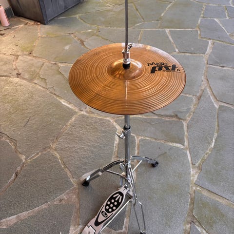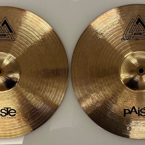 Paiste aksenttilautaset, joista tuli meille harjoitussettiin hi-hat -symbaalipari. Lautasten halkaisija 8 tuumaa eli n. 20cm. Nämä laadukkaat kirkassointiset symbaalit soveltuvat siis hyvin rumpusetin hi-hat-käyttöön, vaikkakin esim. hihnoilla varustettuna käyvät tietenkin mihin tahansa musiikkityyliin. Vastaava setti esim. Soitin Laineella on ovh, 119€.