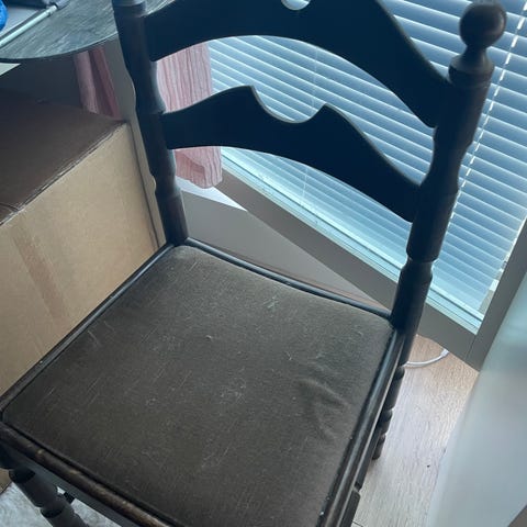 Annetaan siisti nahkainen tuoli. En tiedä onko aitoa vai keinonahkaa, mutta ainakin vahvaa ja todella siistissä kunnossa.
