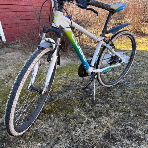 White maastopyörä unisex-käyttöön. Rungon koko S ja renkaat koko 27.5". Toinen vaihdevaijeri kaipaa vaihtoa, tämän vuoksi vaihde ei toimi. Toinen vaihde toimii. Jarrut pitää säätää. Rungon väri on turkoosi. Ei soittokelloa. Jalas kuuluu kauppaan. Ei lukkoa. Tarvitsee varmasti huoltoa. Tullut meille uutena parisen vuotta sitten. Ovh.519€ + varusteet 100€. Nouto Raksila.
