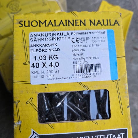Myydään ostopaketeissa lämpimässä tilassa säilytetyttyjä ruuveja, nauloja ym.