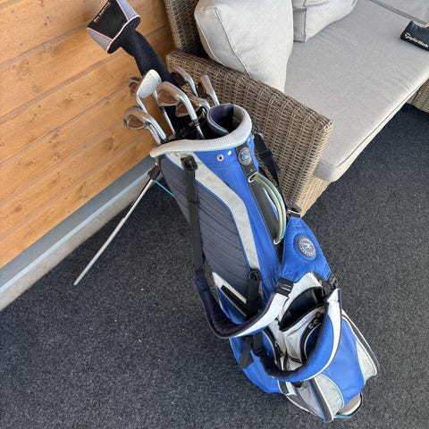 Callaway golfbägi mailasetin kanssa. Settiin kuuluu rautoja sekä puumailoja ja hybridimailoja, joihin on erilliset headcover-suojukset. Bägissä on useita taskuja ja kantoviilekkeet helpottamaan kuljettamista. Värit pääosin musta ja keltainen. Soveltuu hyvin aloittelijalle.
