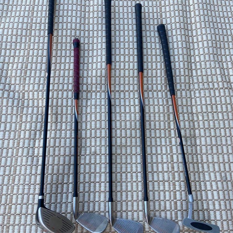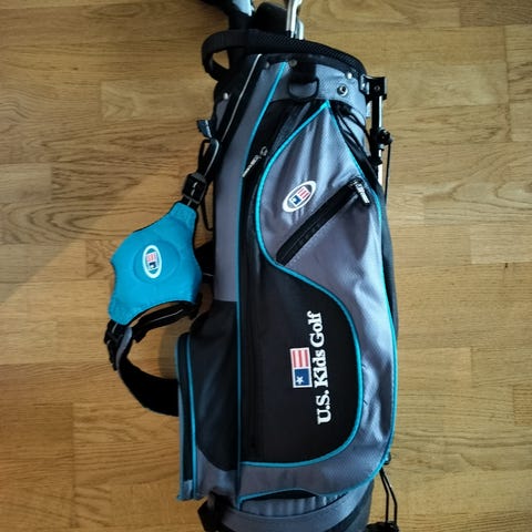 Lasten golfsetti, johon kuuluu bägi, putteri, r7 ja ”draiveri”. R7 pituus 65cm.
