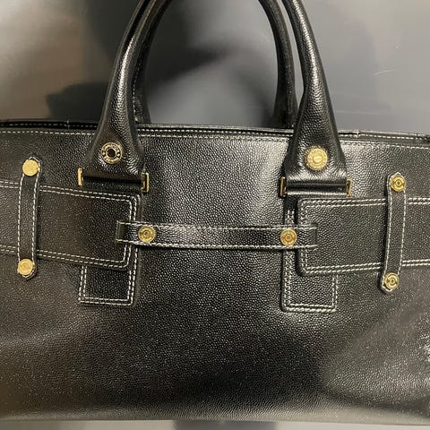 Korkeus 33 cm, leveys 54 cm, pohja 10,5x54 cm. Edessä 2 isoa taskua. Ruskeat tereet.