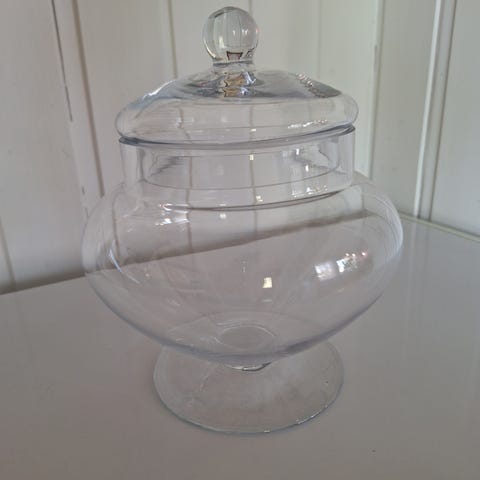 8 lasipurkkia muovikannella