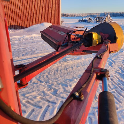 Toimintakuntoinen ja ehjä hinattava niittomurskain rehuhommiin.