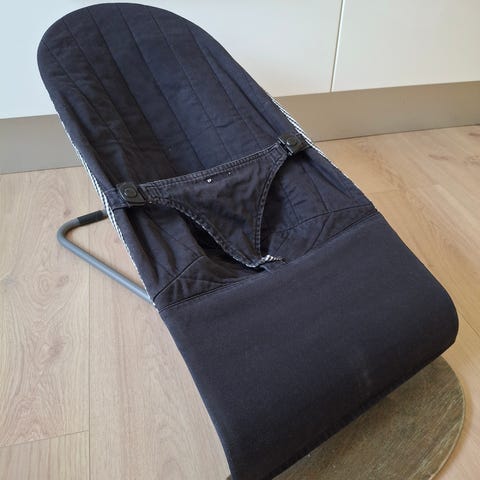 Babybjörn-sitteri. Mukana kaksi kangaspäällistä. Erinomainen pitämään pienokaisen tyytyväisenä.