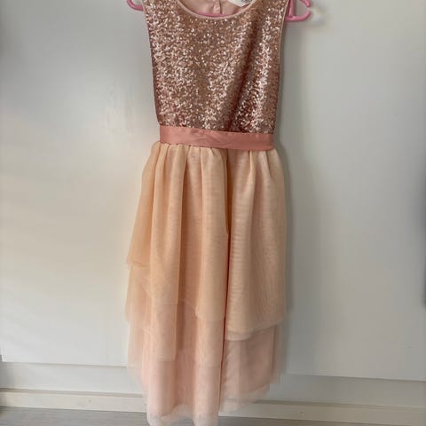 Lindexin kaunis mekko tytöille, koko 134. Yläosa on yksivärinen vaaleanpunainen, lyhythihainen ja pyöreällä pääntiellä. Helma on monikerroksinen ja koristeltu paljeteilla, joissa on vaalea pohjaväri. Mekossa on erillinen vuorikangas helman alla, joka lisää käyttömukavuutta. Sopii arkeen ja juhlaan. Mekko tosi hyvä kuntoinen.