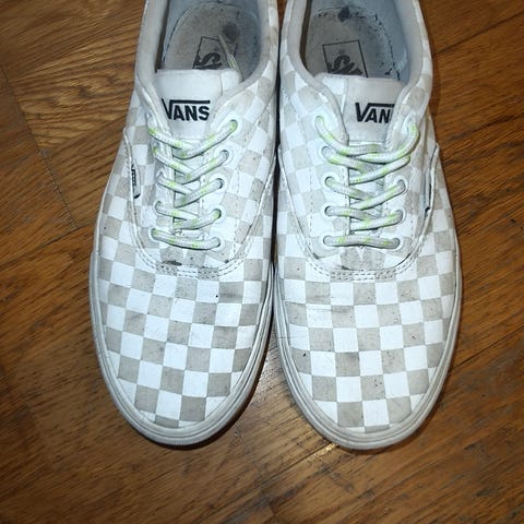 Vans tennarit, koko 42,5. Väri musta-valkoinen, valkoiset nauhat ja pohja. Matalavartinen malli, jossa kankainen päällinen ja kumipohja. Sopivat arkeen ja vapaa-aikaan.