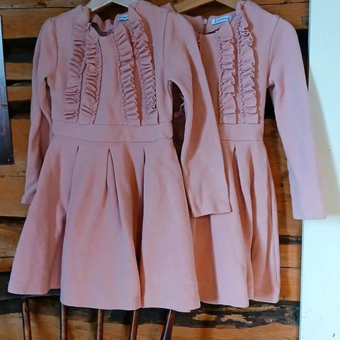 Hyvässä kunnossa olevat farkkutyyppiset mekot. Siistejä, puhtaita ja pesun jälkeen vähän ryppysiä. Tosi kivat olleet meidän tytöillä, hyvin kestäneet käyttöä. 5e yhteensä + postit.
