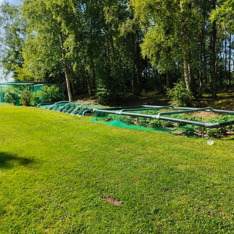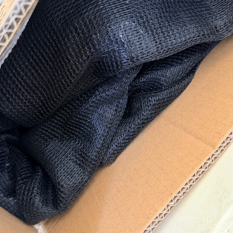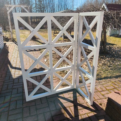 Ylimääräisenä näkösuoja jolla saa rajattua kulman kahteen suuntaan. 5m kangasta molempiin suuntiin. Kankaan väri viininpunainen. Päätytolpat ilman jalkoja löytyy mukaan.