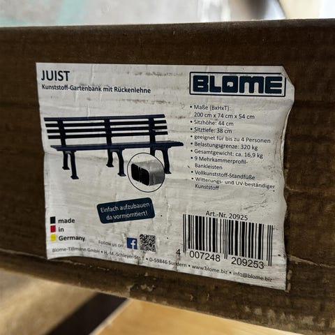 Jyakin Saunte puutarhapenkki, koko noin 120x35 cm, väri musta. Penkissä on suoraviivainen, moderni muotoilu ja se soveltuu käytettäväksi terassilla, parvekkeella tai puutarhassa istuimena tai laskutasona. Materiaali muovipuuta ja jalat metallia, mikä tekee rakenteesta tukevan ja helppohoitoisen ulkokäyttöön.