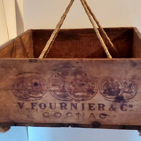 pyöreä puinen hattulaatikko nahkahihnalla