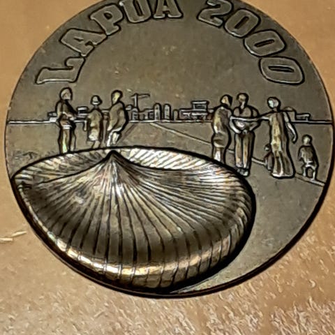 Suomi itsenäisenä 60 vuotta -muistomitali. Mukana sininen taustalevy ja läpinäkyvä muovikotelo säilytystä ja esillepanoa varten. Sopii kokoelmakäyttöön tai muistoesineeksi Suomen itsenäisyyden 60-vuotisjuhlasta.