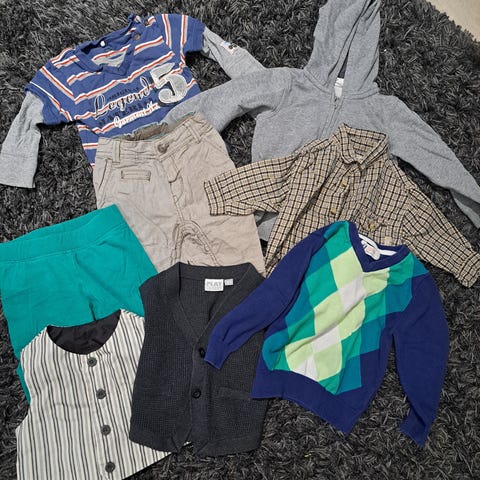 Vaatepaketti pojalle / unisex. Osaa käytetty enemmän, osaa vähemmän. Ei siis priimaa, mutta kaikki vielä käyttökelpoisia. Koot vastaavat 80-86 kokoa.
