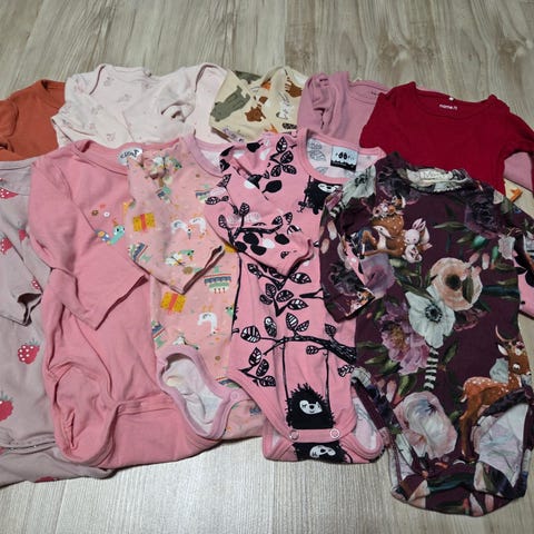 Kaikki vaatteet ehjiä, jossain saattaa olla pientä kulumaa ja pesunukkaa. Yhden hihassa kellastuu, en ole yrittänyt poistaa.