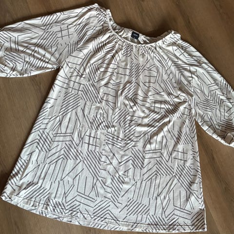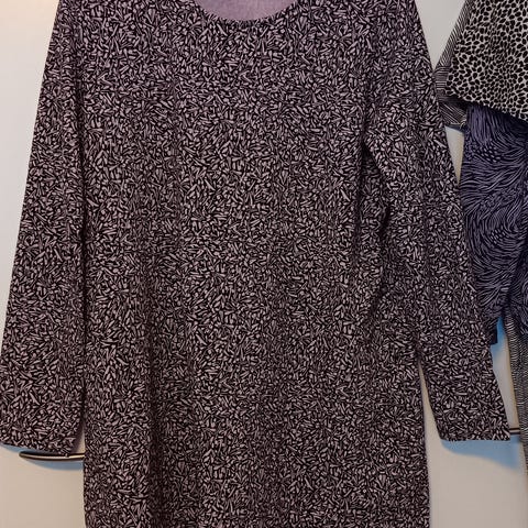 Musta/valkokirjava Nanson tunika, uuttavastaavassa kunnossa. Mitat ovat kai-kai 61cm, olka-helma 82cm ja koko XL. Postitus onnistuu ostajan maksaessa postituskulut.