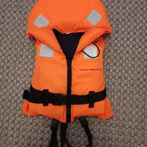 Marinepool pelastusliivi. Käännettävä toinen puoli punainen, toinen tummanharmaa. Painoluokka: 30-50kg. Vain nouto hukanhauta