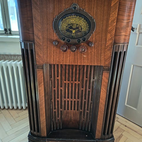 Olisiko 1950-60-luvun ajalta oleva radio.Koko leveys 21 cm,korkeus 15 cm,paksuus 6.5 cm.Kunnosta ei mitään tietoa.