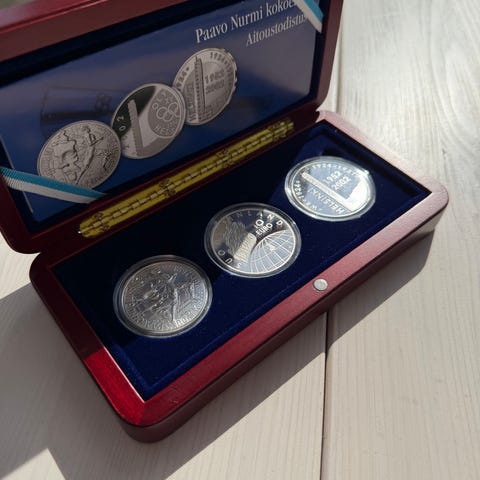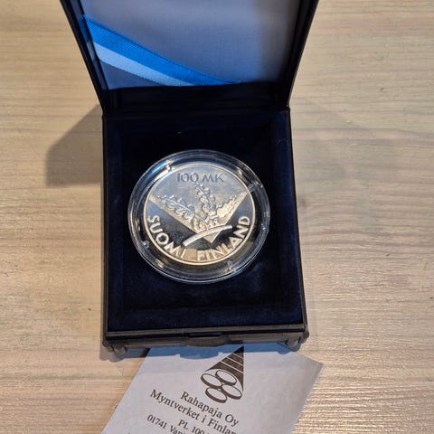Mannerheim ja Pietari -aiheinen hopearaha esittelykotelossa Pietarin 300 v kunniaksi. Rahan mukana tulee alkuperäinen aitoustodistus, jossa on tekniset tiedot ja leimat. Hopearaha on sijoitettu siniseen rasiaan, jossa on pehmuste ja kansivuori. Raha on suojamuovirasiassa. Kts. kuvat 2 kpl. Hopea Ag 925, 27,4 g, Proof laatuinen! V. 2003. Tee tarjous?