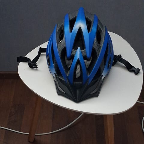 Kypärän takaosassa remmiä ohjaava muoviosa poikki, mikä ei juuri haittaa käyttöä. Kypärällä ei ole kaaduttu, ja muuten siisti ja ehjä.
