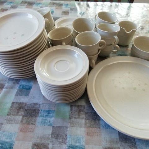 Myydään kahviastiasto, 6klp kupit ja asetit, kermakko, sokerikko ja tarjoilulautanen