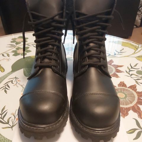 Rammstein teräskärjelliset maiharit koossa 38. Käytetty kolme tai neljä kertaa, joten todella hyvässä kunnossa. Sisäpuolelle kantapäihin laitettu pehmusteet. Pohjissa ruuvi koristeet. Naarmu jäänyt kantapäihin, kun polkaistu toista jalkaa käyttäen pois jaloista.