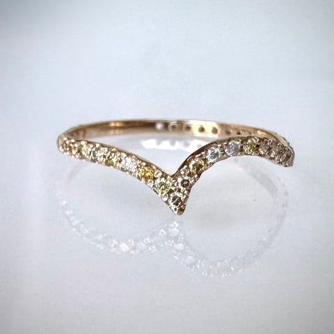 Siro ja tyylikäs 14k valkokultainen timanttisormus modernilla V-muotoilulla.