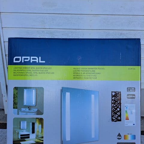 Kristall Form -merkkinen LED-valopeili, malliltaan Merkur. Ollut käytössä muutaman vuoden. 50x70cm